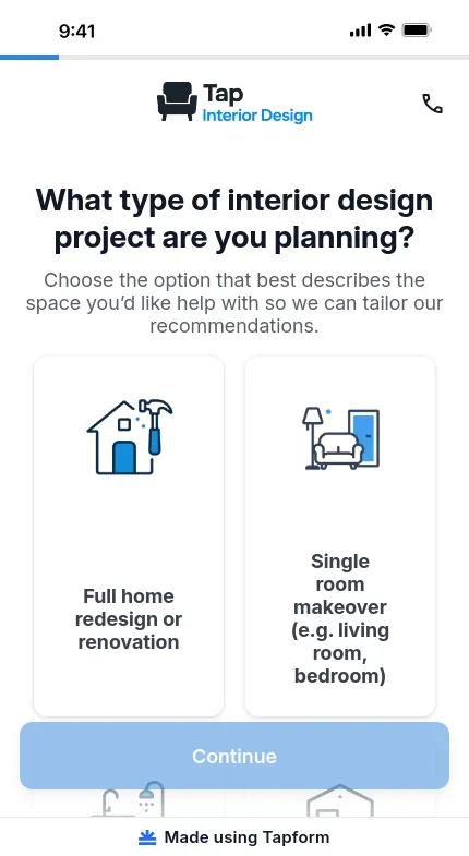 Traditional lead forms are no longer effective. Tapform offers interactive, multi-step lead capture forms that boost lead generation and conversion rates by keeping website visitors engaged and simplifying the lead qualification process. Designed for modern lead generation, Tapform’s user-friendly form builder and funnel tool works seamlessly on any landing page and across all platforms.