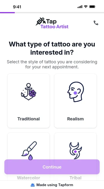 Tattoo artist form template with appointments