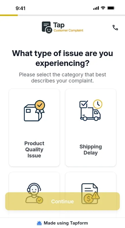 Multi-step customer complaint form template